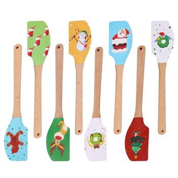 Ensemble de spatules en silicone imprimées avec grattoir à manche en bois de style Noël